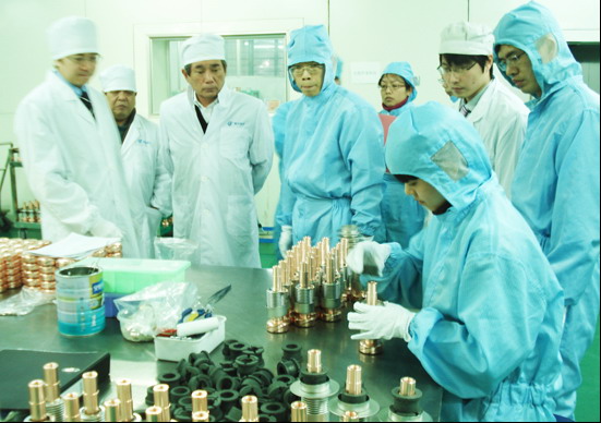 在公司期间,日本客人参观了生产现场。